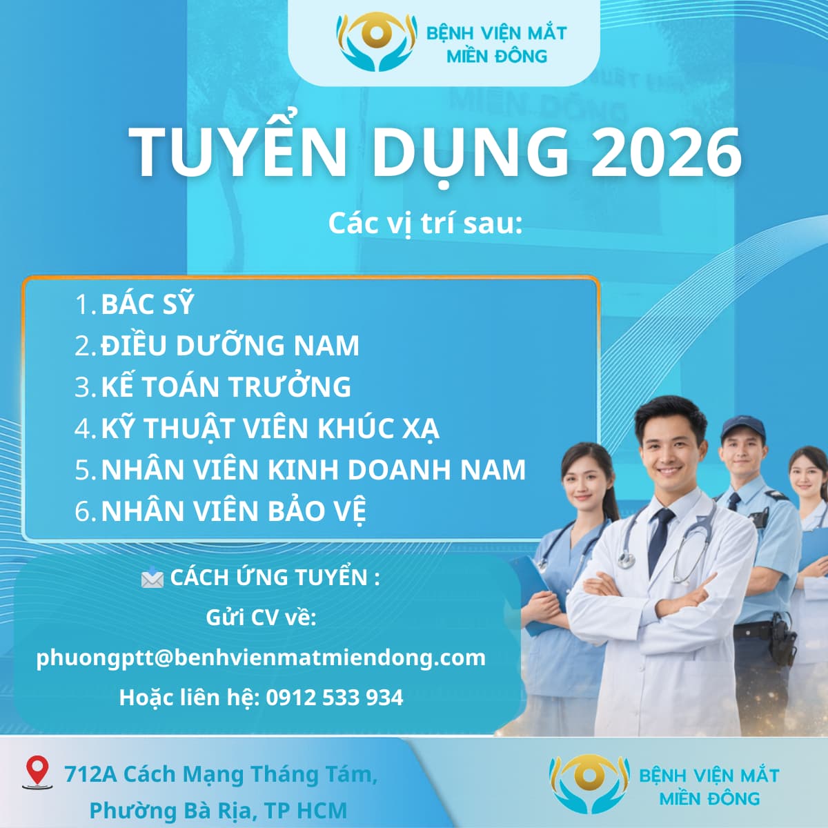 Nhằm đáp ứng nhu cầu phát triển và nâng cao chất lượng dịch vụ, Bệnh viện Mắt Miền Đông tuyển dụng
