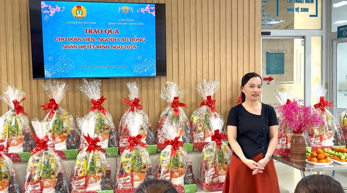 Nhân dịp Tết Nguyên đán Bính Ngọ 2026, Công đoàn cơ sở Bệnh viện mắt miền đông đã tổ chức hoạt động trao tặng quà Tết cho đội ngũ cán bộ nhân viên, người lao động đang công tác tại bệnh viện.